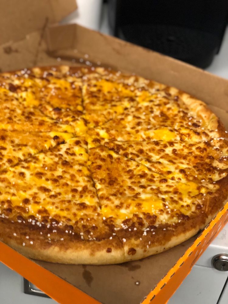 Large round Cheese pizza with a stuffed crust brushed with our signature Crazy Crust, a buttery-flavored garlic spread sprinkled with Parmesan.